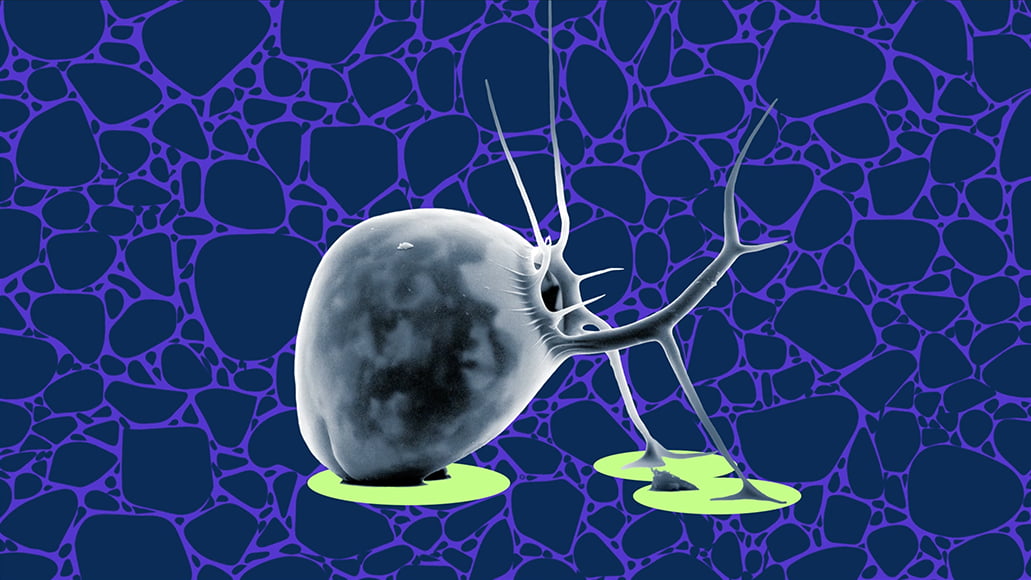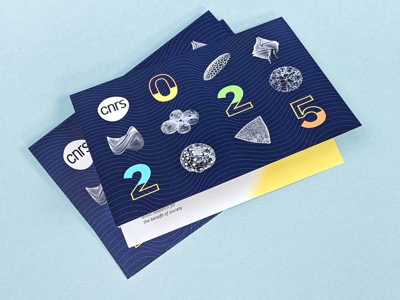 Pour cette nouvelle année, j’ai souhaité mettre en scène les formes organiques présentes sur les clichés d’imagerie par microscopie. CNRS Images est la plateforme qui conserve et valorise tout le patrimoine visuel du CNRS et c’est avec curiosité et bonheur que j’ai pu m’y plonger pour mes recherches. Ce fut également l’occasion de présenter la nouvelle identité sonore.